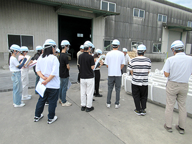 見学の際には、当社が進めている脱炭素への取り組みや、地域の皆さまに無料開放している野球場などの社会貢献活動についてもご紹介しました。ものづくりの現場を直接ご覧いただく機会は少ないかと思いますが、学生の皆さまにコンクリート業界へ少しでも関心を持っていただければ幸いです。