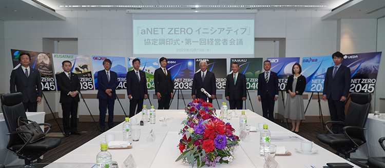 2022年10月19日、東京都内にて『aNET ZERO イニシアティブ』協定調印式・第一回経営者会議が行われ、当社代表取締役社長 草竹晃司が出席いたしました。